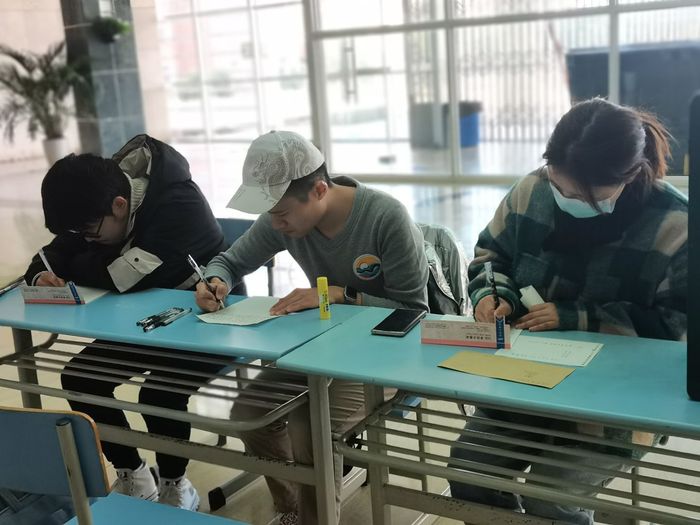 此次活动主要面向大一新生,虽然是难得的周末,很多新生还是积极参与,愿意在周末抽出空来为自己写下这封跨越四个春秋的信。先到的同学先入座开始写信,后面排队的同学也不急不缓,整个过程安静又有序的顺利开展。每一位写信的同学们或奋笔,或沉思,仿佛透过薄如蝉翼的纸张看见了自己四年后的模样,整个场馆内只闻落笔的沙沙声。