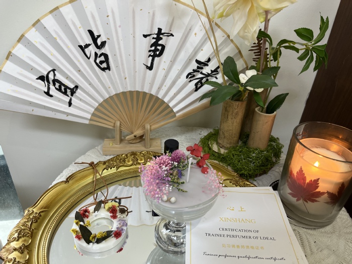 在活动现场,操作台上陈列着香水、香薰牌、香氛蜡烛的制作材料,更有非遗工艺螺钿发簪制作项目。女教职工们根据自己的兴趣自由选择,纷纷化身“手作达人”,有的凝神调香,有的精心挑选装饰,有的小心翼翼地将螺钿片镶嵌在发簪上,大家都全身心投入到创作中,活动现场气氛热烈,充满欢声笑语。