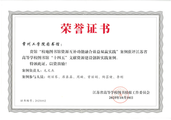 近日,江苏高校图书馆“十四五”文献资源建设创新实践案例评选结果正式公布,我校图书馆报送的校地图书馆资源互补、功能融合、效益双赢实践案例成功入选,并受邀在省高校图工委文献资源建设专业委员会2025年年会现场作案例分享,其创新模式与实践成效获全省高校图书馆同行高度认可。