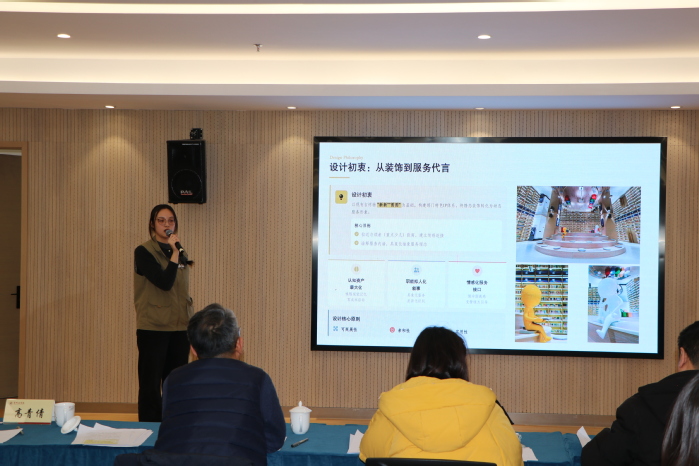 本次竞赛邀请校办公室、人事处、宣传部、艺术与设计学院及新北区图书馆相关领导组成专业评委团,秉持公平、公正、公开原则,从部门契合度、设计科学性、创新创意、可行性与推广价值等多个维度,对参赛队伍的书面方案与现场汇报进行综合评审。担任评委的人事处副处长刘松、艺术与设计学院副院长彭伟 等在点评时高度肯定了竞赛的实践意义,认为活动以形象设计为载体,让AI技术在文化服务领域的应用变得具体可感,其探索成果将为图书馆/档案馆服务品牌建设积累宝贵经验。